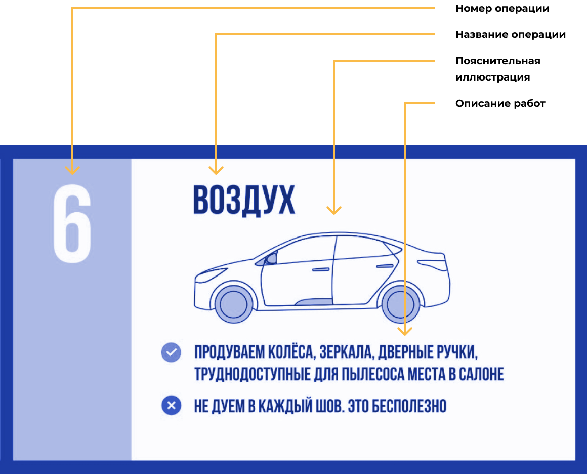 За основу мы взяли фирменный стиль Аквастенда, сделали несколько уникальных иллюстраций, на которых отметили участки, где нужно мыть во время конкретной операции. Также использовали понятную инфографику и ключевые фразы по каждой операции.