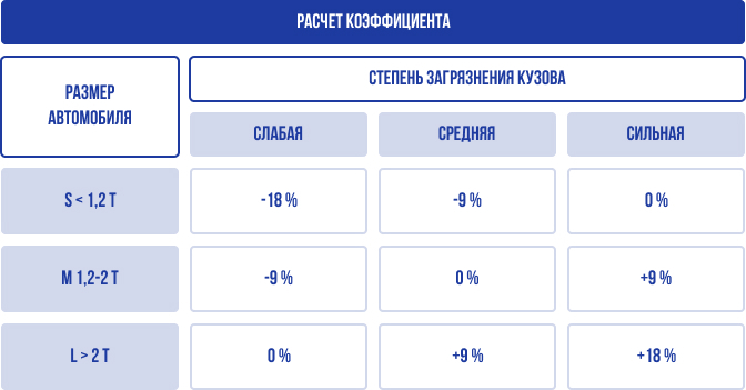 Мы разработали коэффициент, чтобы пользователи могли вычислить время мойки автомобиля. После, мы преобразовали его в пункты, которые также можно выбрать. При выборе разных типов автомобиля и степени загрязнения, меняется время мойки.