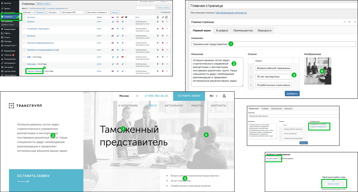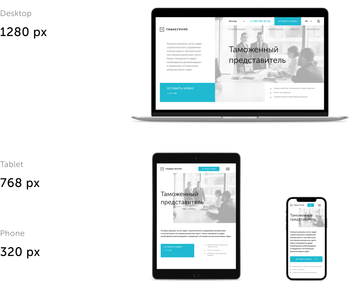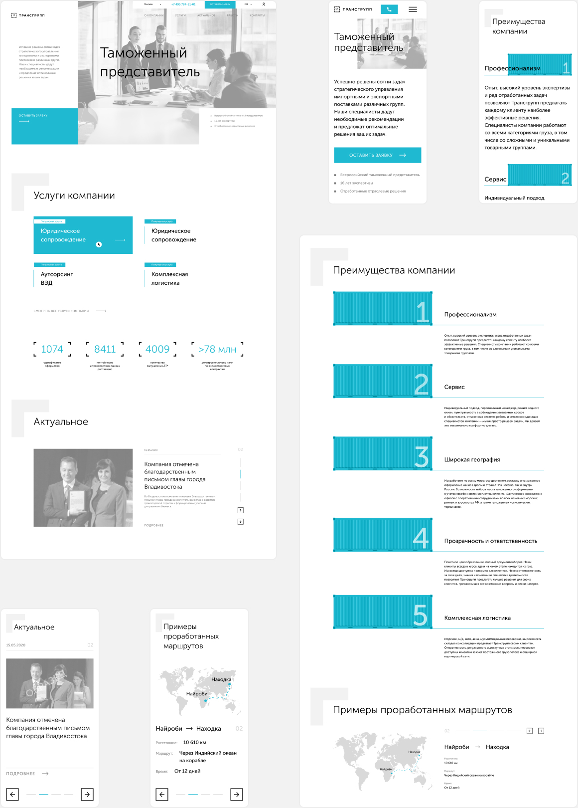 Дать возможность менеджерам «Трансгрупп» получать клиентские заявки через сайт. Информировать потенциальных клиентов об услугах и кейсах компании. Повысить узнаваемость бренда.