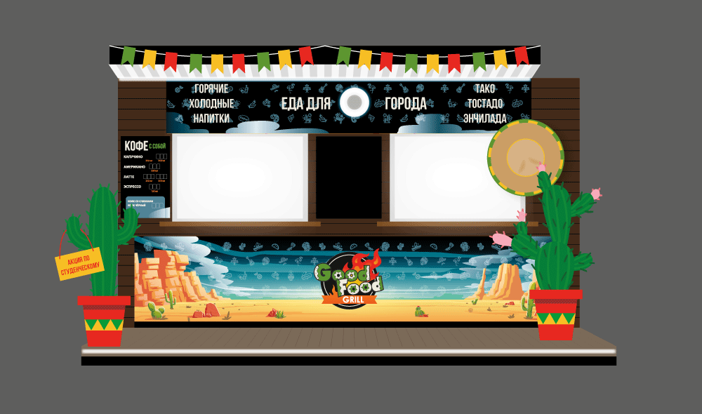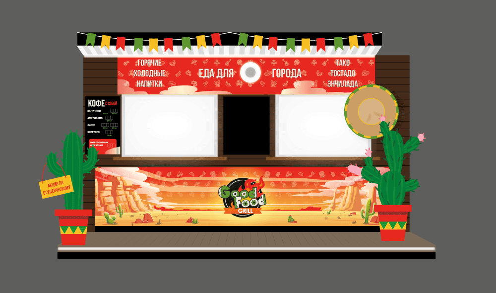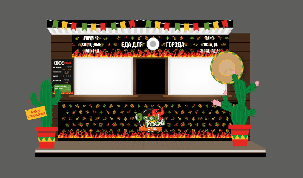 Новое кулинарное направление закусочной в первую очередь отразилось на логотипе. Работая с ним, мы изменили типографику, добавили в нее больше деталей, а также немного изменили цветовую палитру, привнеся этим узнаваемый мексиканский колорит в изначально достаточно строгие формы.