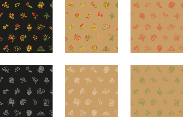 Изменения коснулись и других элементов фирменного стиля. Мы создали интересный «мексиканский» паттерн и разместили его в экстерьере бренда, а также на других носителях.