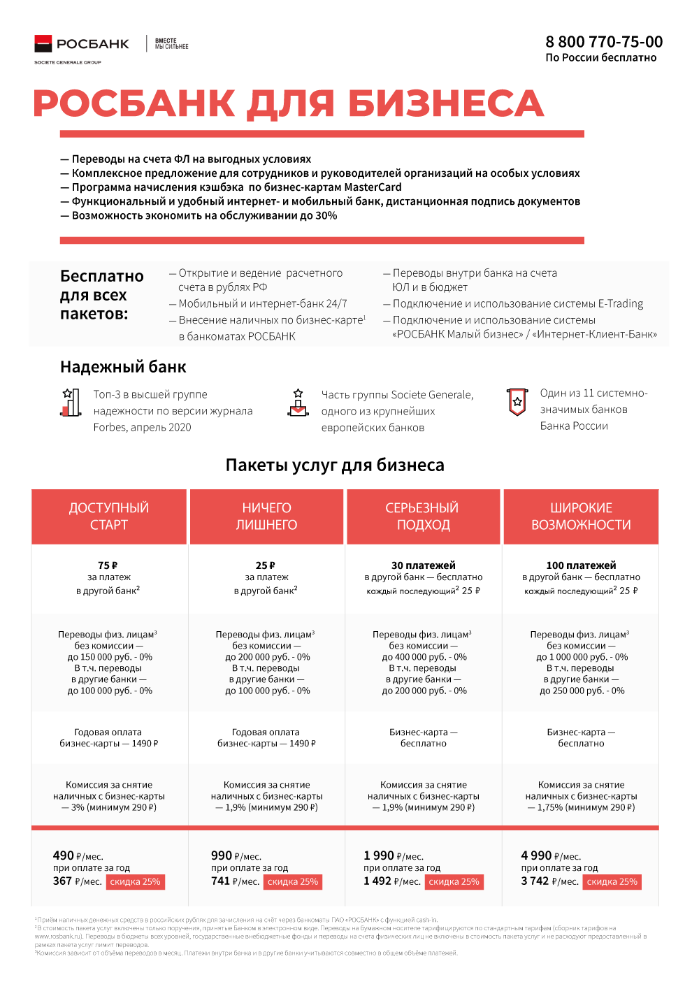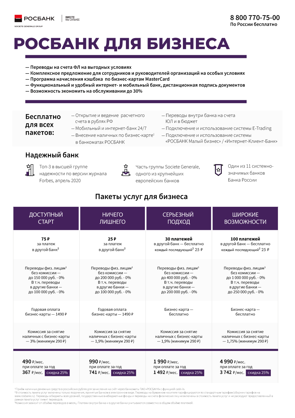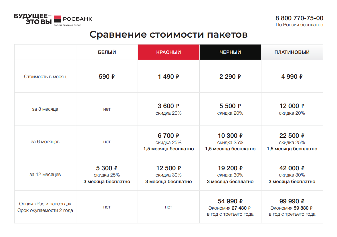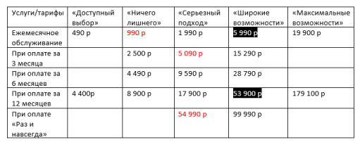 Сравнительная таблица пакетов, коммерческое предложение и тарифный сборник