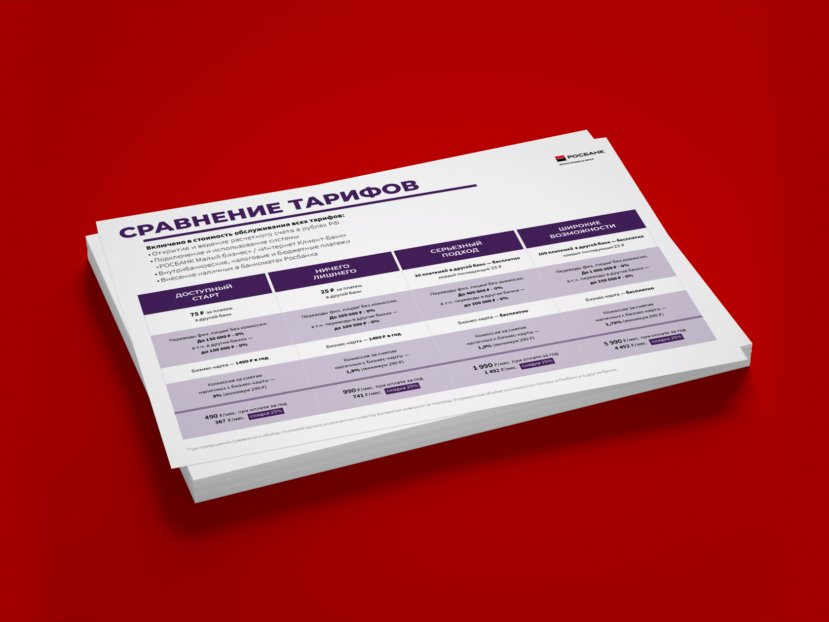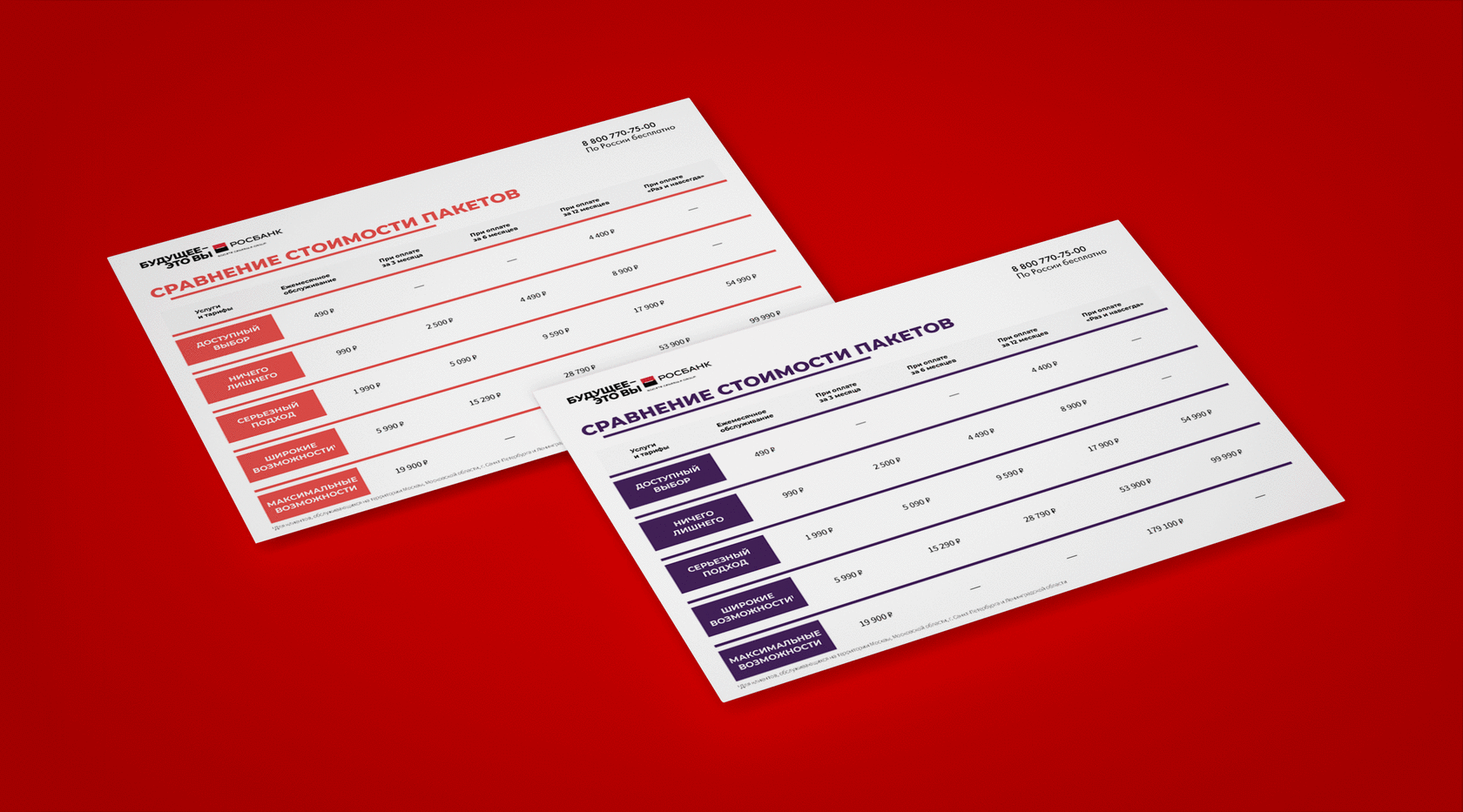 Мы разработали несколько версий коммерческого предложения для разных регионов России и с учетом сезонных акций, привели их к единому визуальному образу со сравнительной таблицей тарифов.
